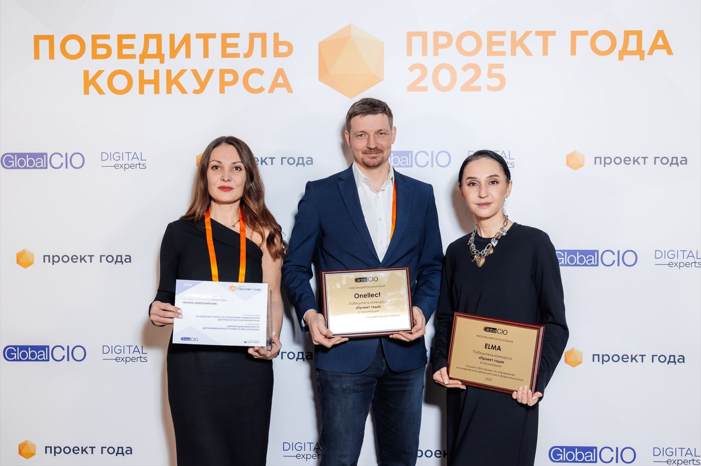 28 января 2026 года состоялась церемония награждения победителей престижного конкурса «Проект года» от Global CIO. По итогам голосования экспертного сообщества сразу три проекта с участием Onellect были признаны лучшими в своих номинациях, что подтверждает высокий уровень нашей экспертизы и качество реализуемых цифровых решений.